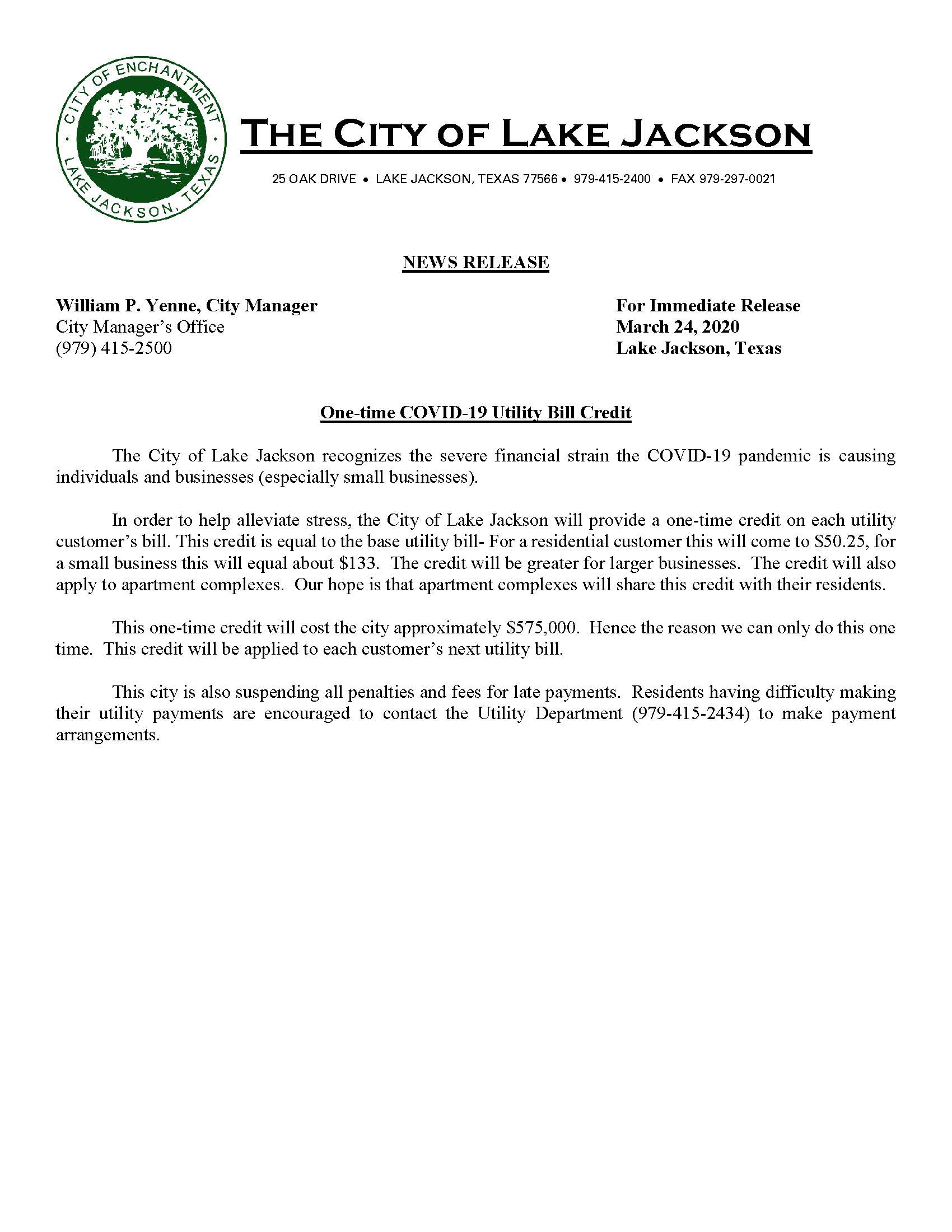 - Utility Bill Credit